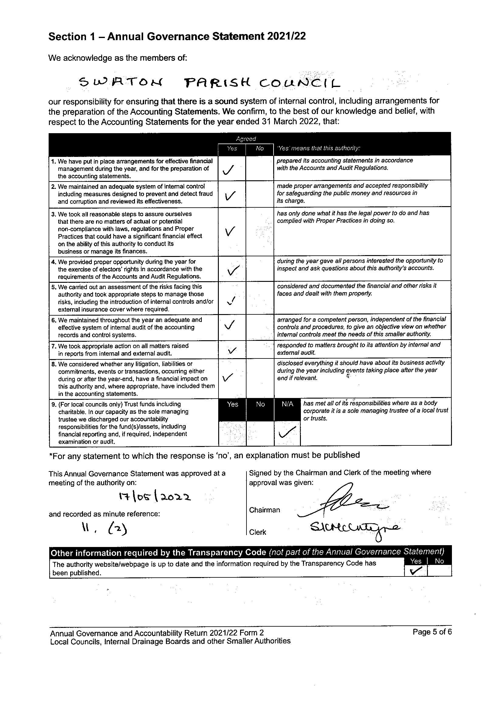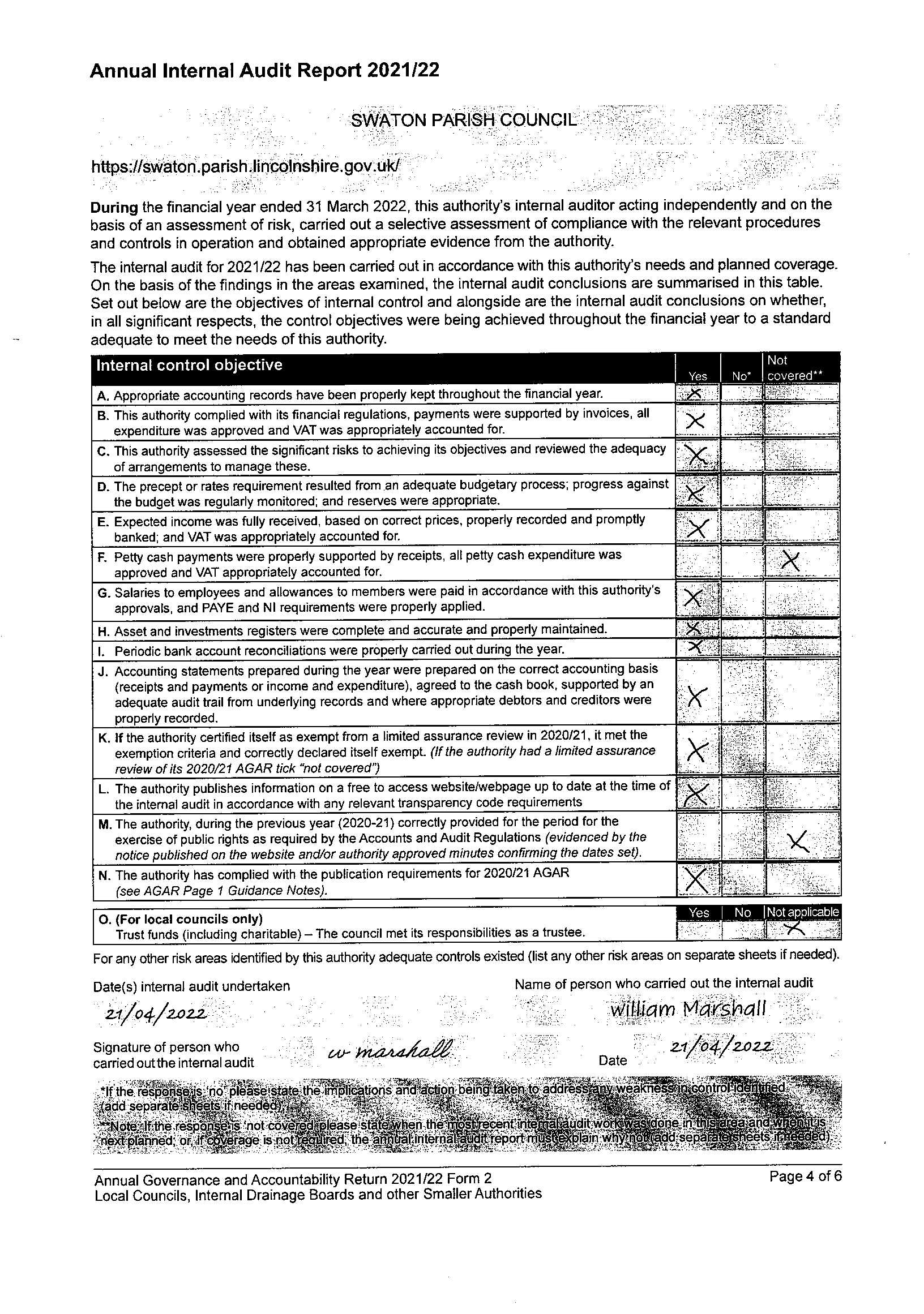 AUDIT Annual Governance statement 2022 Section 1 Internal Audit report